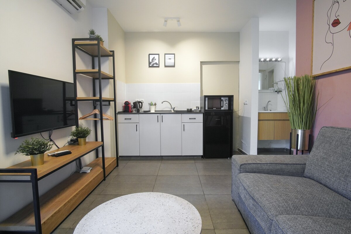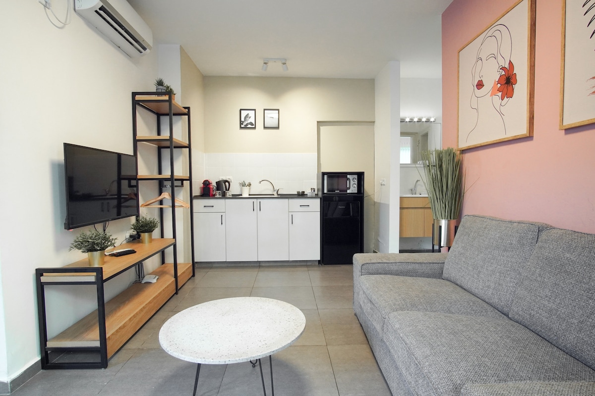 The spaceExperience comfort and style in our centrally located 1-bedroom apartment in Tel Aviv. With a cozy bedroom, a modern living room, and a fully equipped kitchen, it's the perfect base for your city adventure. Step out onto the private balcony to unwind and enjoy stunning city views – whether for a morning coffee or a sunset drink. Just 5 minutes to the beach, and close to the best restaurants, nightlife, and attractions.